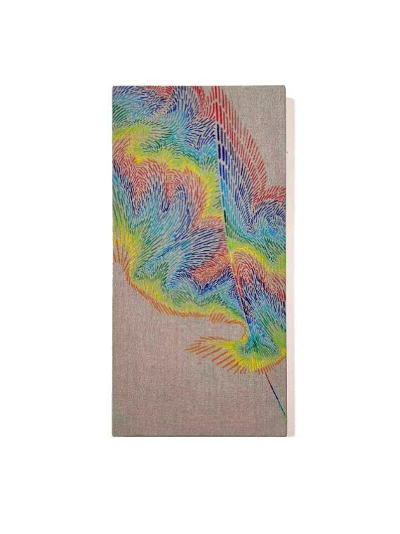 点与线的重复排列,如同单曲循环,却融入了对科技与人生的深邃思考,螺丝钉一般的芸芸众生,淹没(或隐藏)于如计算机精准的算法中,是现代消融了传统?还是传统俘获了现代?