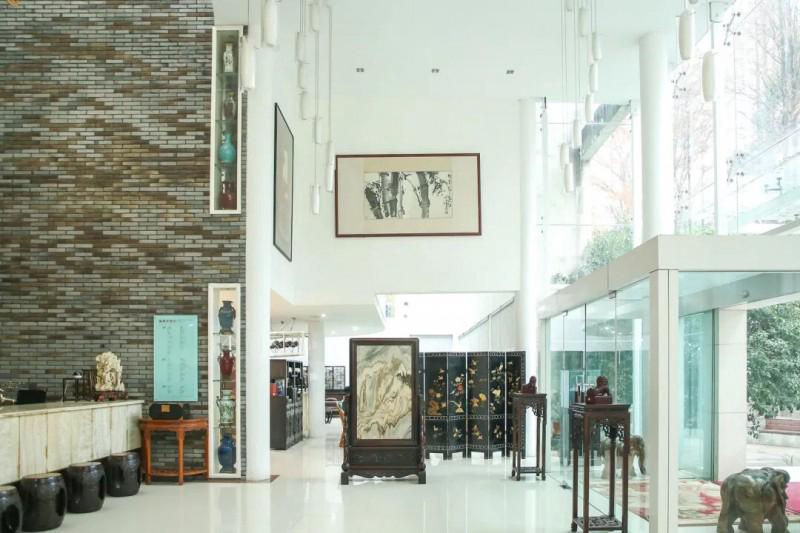 若夫晨熹初沐,烟岚未晞。径绕寒松,阶铺落桂。启朱扉而纳爽,展素轴以观艺:御瓷凝云,萃宫苑之华彩;墨痕走玉,承浙派之逸气。主人延客,烹白茶于庭际;嘉木当窗,筛碎影于几笥。或谈器之韵,或辨画之谛,忘尘嚣之扰,得丘壑之趣。