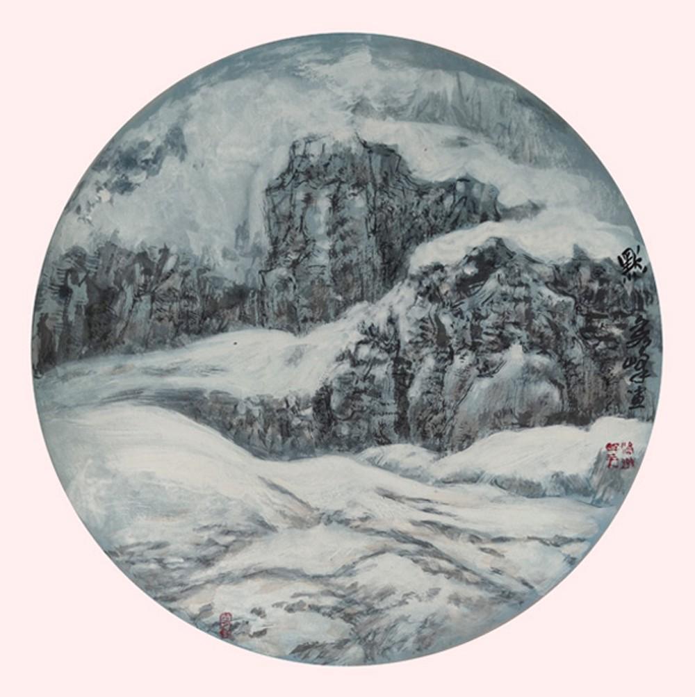 李秀峰的山水世界,扎根于西北大地的苍茫辽阔。她不绘江南的烟雨朦胧,不摹中原的层峦叠翠,独独钟情于塞外的草原戈壁、雪原高天。那是《雪原》里铺陈千里的素白,寒风掠过,似有牧歌隐隐回响;那是《秋吟图》中漫山遍野的金黄,胡杨挺立如炬,将秋阳的暖意揉进每一道笔触。她笔下的山石,少了斧劈皴的刚硬锐利,多了披麻皴的温润浑厚,仿佛是大地肌肤的纹理,带着岁月沉淀的质朴;她画的云,不是轻盈的棉絮,而是裹挟着风沙的流岚,在天际与草原的交界处舒展,将天地晕染成一片浑然的苍茫。