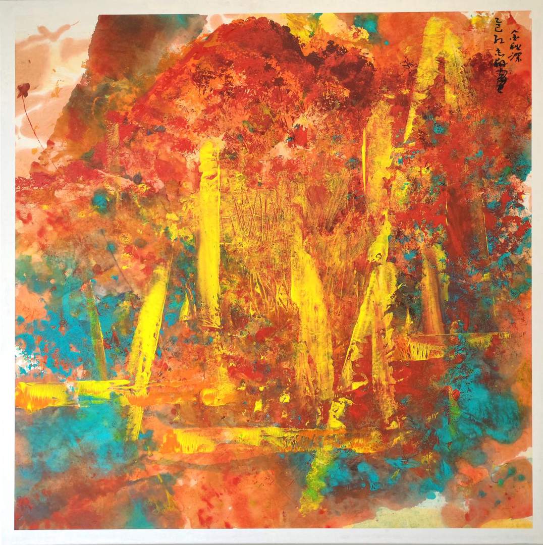 第三幕“星丛”, 是“绽放”的宇宙,也是是 “会心”与“生成” 的宇宙。长廊里悬挂的四时五行,时空穿梭中抵达核心星体旋涡,这里展示的“重彩画面”,有丙烯有油画也有中国彩墨,标志着一种崭新本体的诞生——我们称之为 “心象山水” 。它已非风景画,而是一种精神的能量拓扑。画面中,色彩与肌理的碰撞、流淌与控制,形成了一种春夏秋冬内在的引力场。这既呼应了德勒兹所言“感觉的逻辑”,是让不可见的情感与时间变得可见;更深层次上,它回归了徐复观先生所阐释的“中国艺术精神”——艺术最终是主体生命境界的迹化。邵老师的贡献在于,他用全球当代艺术通用的材料与抽象语言,诠释并延展了这一东方美学的核心命题。