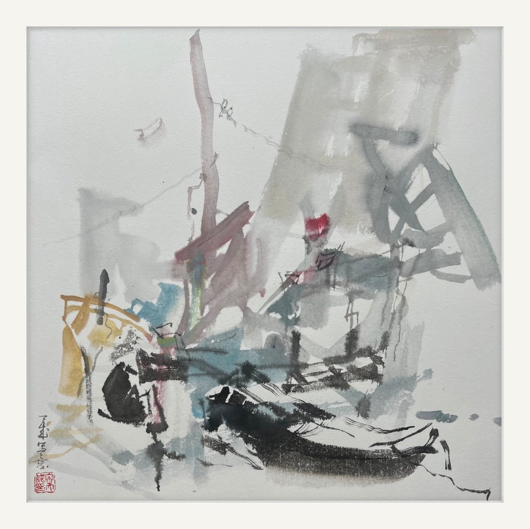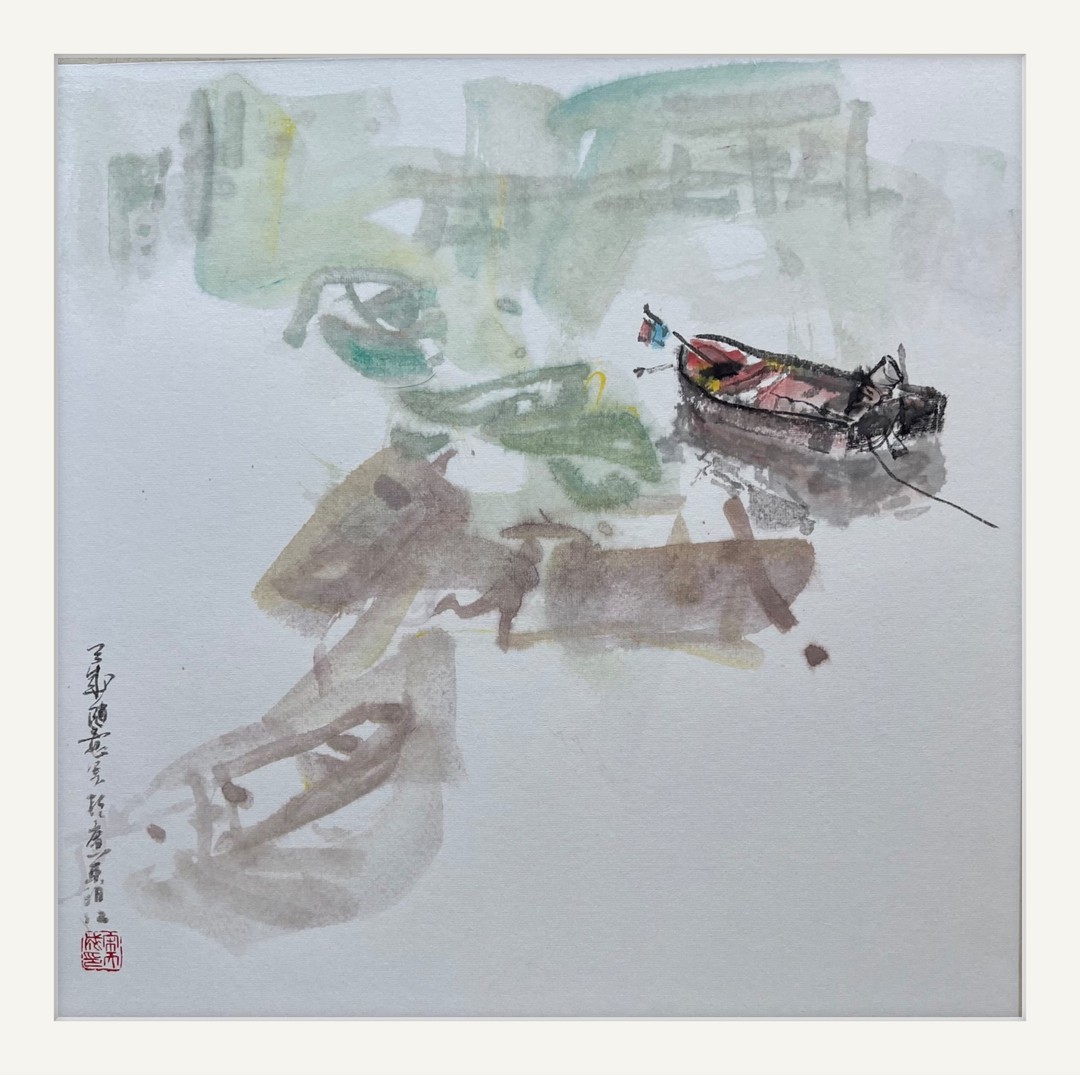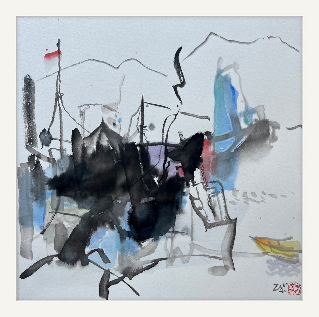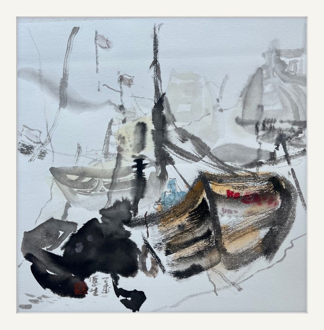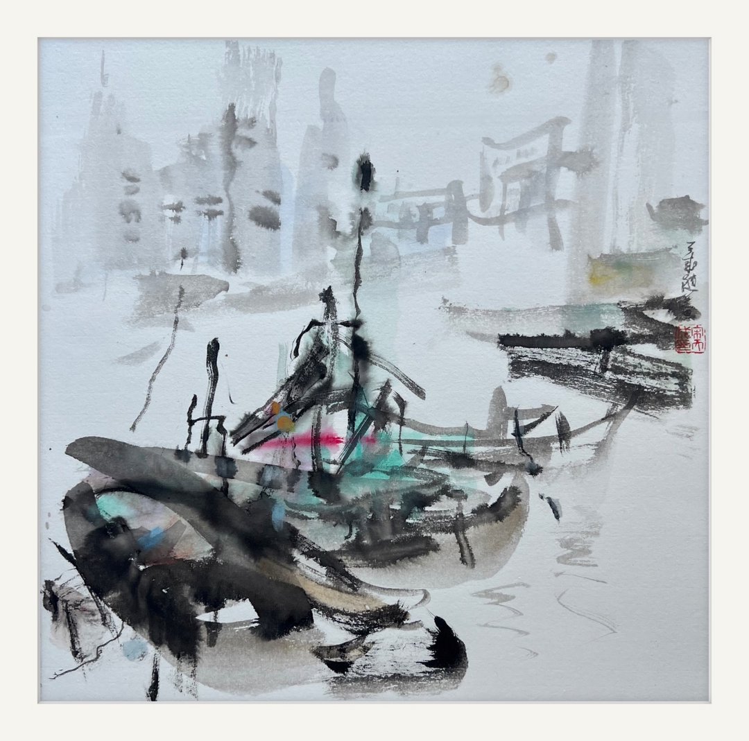 船舰交错重叠、竞相延展,钢架高低错落、形色妖艳,桅杆鳞次栉比、形如利箭,缆绳六色五颜、纵横纠缠;浪花乱飞,光照四溅,马达轰鸣,笛声震天;渔歌悠闲,哨音袅艳。每一艘舟楫,每一根桅杆,每一方舵盘,每一个渔人都成为了这片海域不可或缺的构件。然而,只要你屏心静气,就会发现如此“混沌”中竟然裹挟着某种超乎寻常的能量,亦或一种蓬勃向上的生命活力。是的,这种“乱”并非真乱,而是一种清亮的混沌,一种包蕴着无限可能的动态平衡与让人诧异于凌乱的和谐之美。假如你是艺术家,你还会看到波涛上每一个音符是如何被秩序定格,每一个影相是如何被结体,每一个色域之间的负空间是如何被赋能的。这些色块、音符、影相并未被禁锢于你的画面,它们只是很安静地排列在那里,似乎有一双大手紧紧拽住流动的空气,把眼前移动的一切稳稳当当安放在各自应有的位置。这种空间静默中的张力,让你感觉它们会由内而外爆炸开来,把眼前的一切连同你的灵魂碎裂成飘渺的虚空。其时,一个声音还会告诉你画面之外不在场的正在为如此场景的展现提供更多潜质的能量支撑。