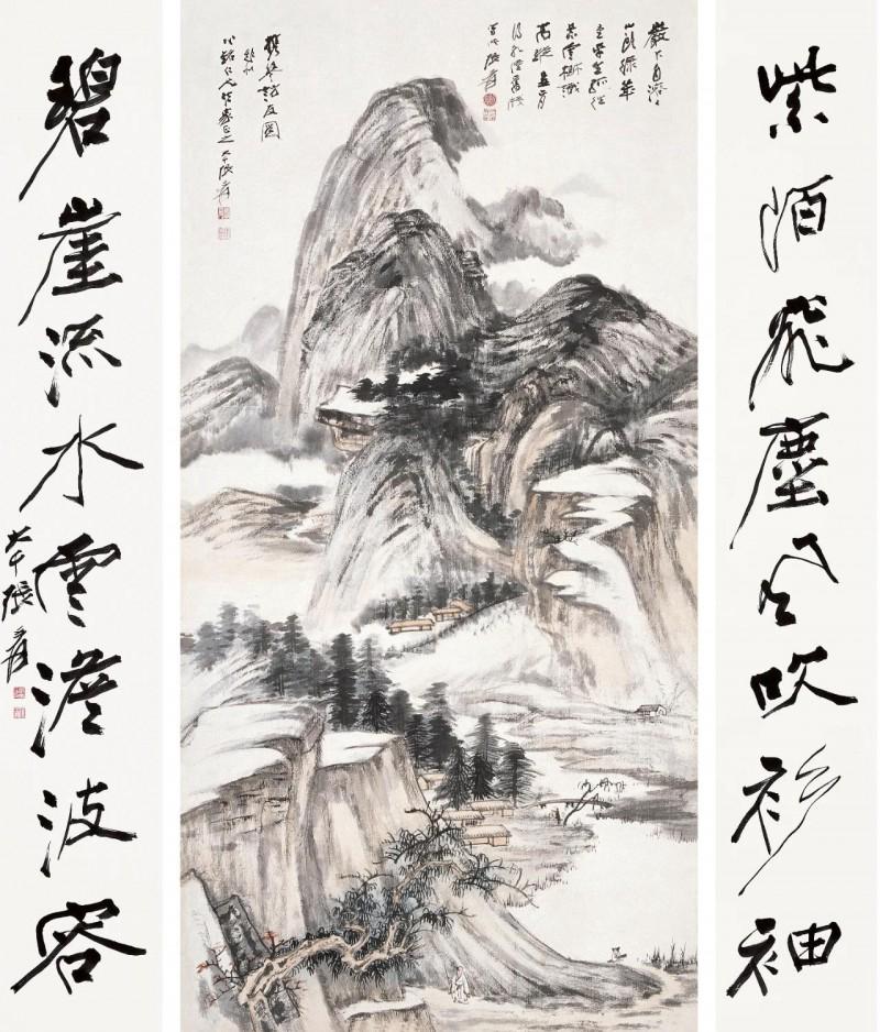 携琴访友图/行书八言联 张大千