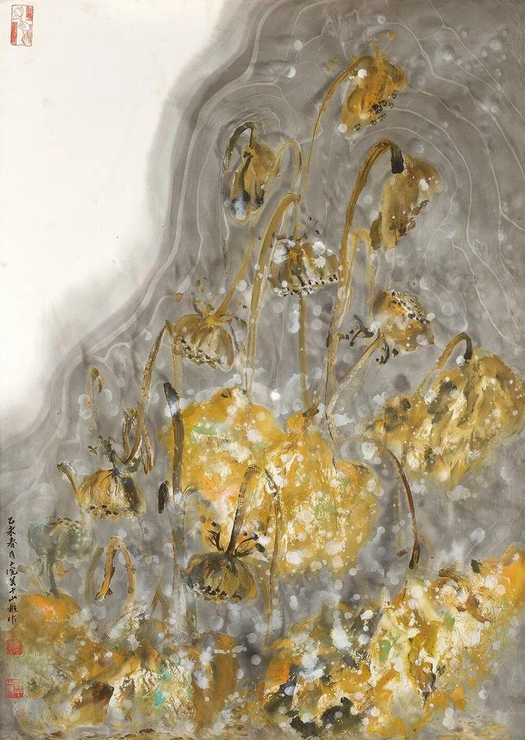 叶向礼先生也画秋天的枯荷与残荷,因为荷的春、夏、秋、冬之姿,在他的眼中均是无比之亲切和优美,况且荷的“出淤泥而不染,濯清涟而不妖”的精神品格,已浸透到向礼先生的心脑之中,并认同之为南无观世音菩萨的化身!