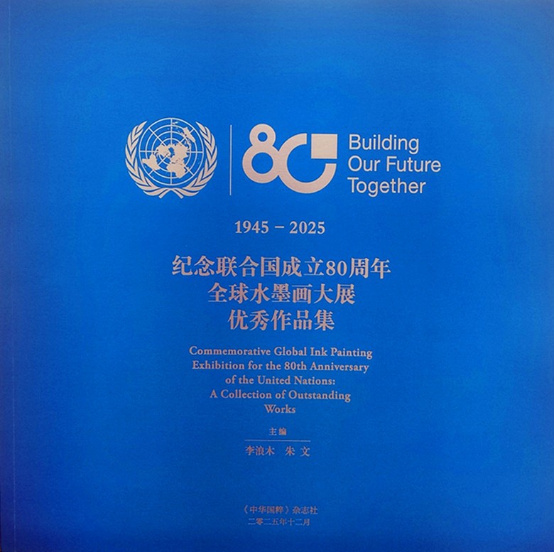 收录《纪念联合国成立80周年全球水墨画大展优秀作品集》(主编 李朗木 朱文)(左)