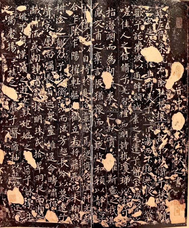 平心而论,羲献父子,在中国书法史上皆达到极高的境界,在笔法和美学风格上各有千秋——羲以真行为最,献则以行草为能。酷爱王羲之书法的唐太宗,不仅全力收罗王书两千余件,又让释怀仁集王字集成自己所撰的《圣教序》,并让初唐书法名家临摹《兰亭序》,且亲自为《晋书·王羲之传》撰赞辞,认为右军“尽善尽美”。从此,王羲之在书学史上至高无上的地位被确立并巩固下来。