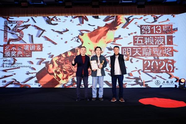 2026年4月17日18:30,“第十三届五粮液『明天雕塑奖』艺术家演讲暨颁奖典礼”在四川美术学院多功能学术交流中心举行,并同步进行线上直播。刘家琨、范勃、姜杰、何桂彦、Sara Al-Mutlaq(沙特阿拉伯)5位终评评委根据展览现场及艺术家们的精彩演讲,进行了现场评分并公布获奖名单。最终,评选出3位“年度奖”、1位“年度公共艺术奖”、1位“年度大奖”获得者。