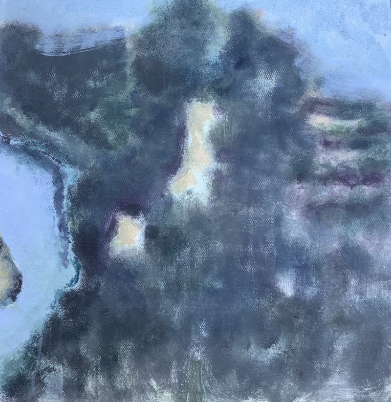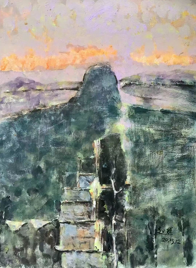 赵辉的作品注重于一种直抒胸臆的情感标的。在他的绘画作品中,我们看到的是另一般风景画,并非如摄影般的临墓,而是以大的色块、线条,表达一种内在精神。