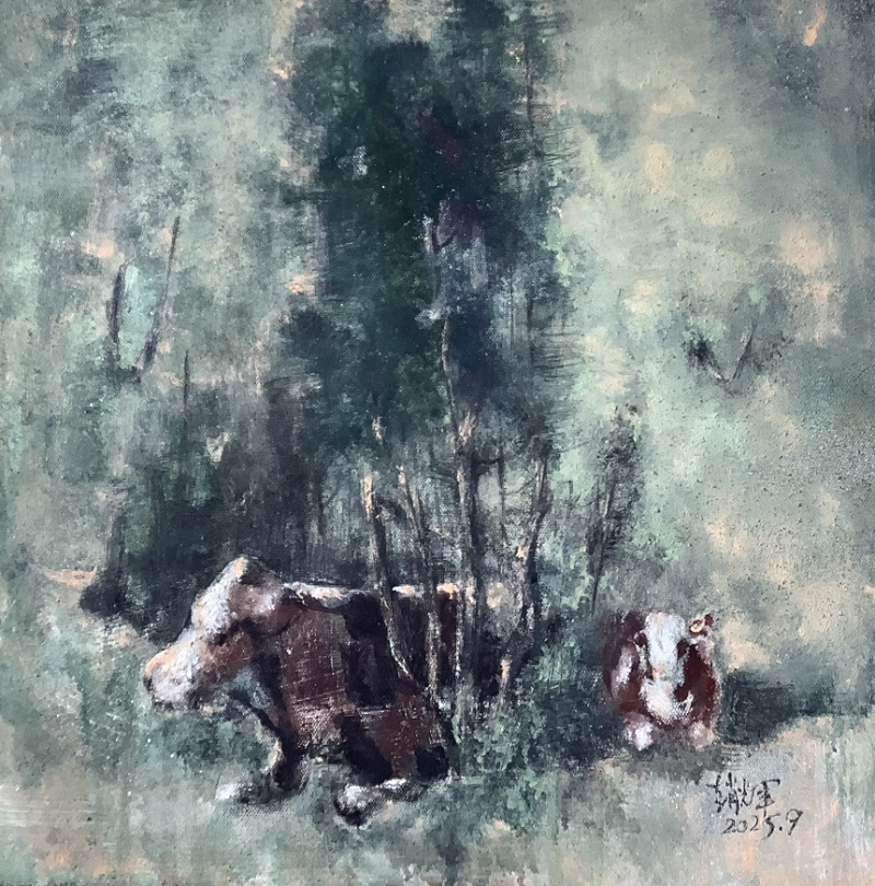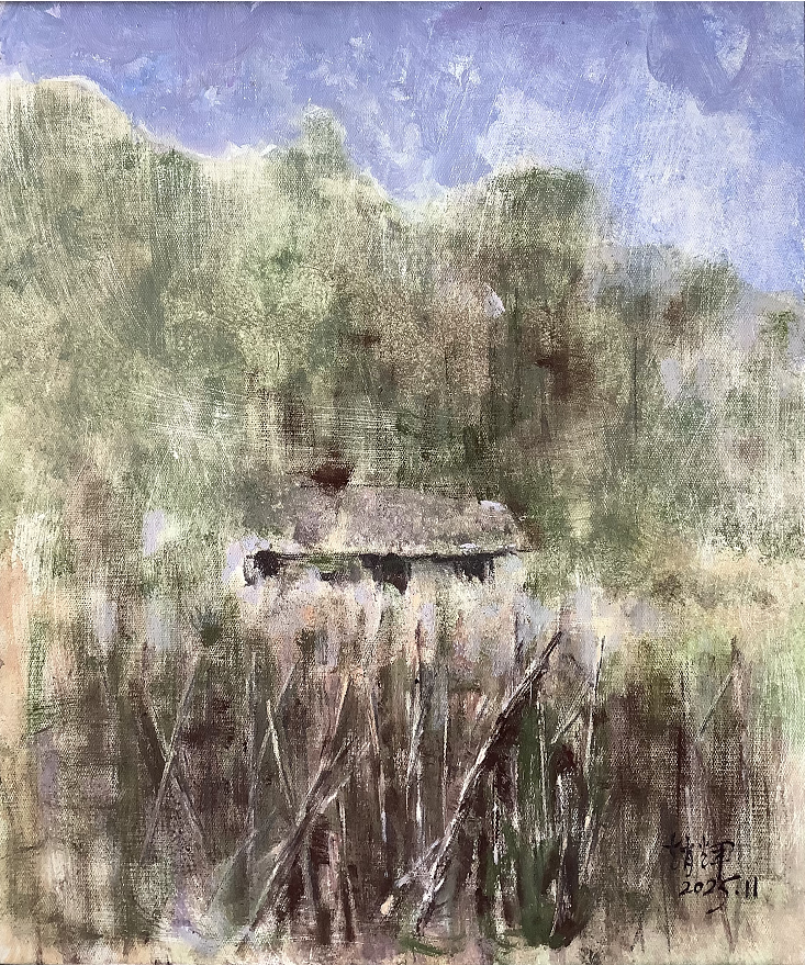 他的绘画风格进入一种更充分的笔法中。画面中的运笔来自更有信心的笔法,表达着超过单一姿态的意义。始终关注着西方油画与民族绘画审美经验的统一性上,怎样以艺术语言来实现心中意象的显现,能够看出他吸收了中国画的精神内涵。他的画就象在读一首田园的抒情诗。
