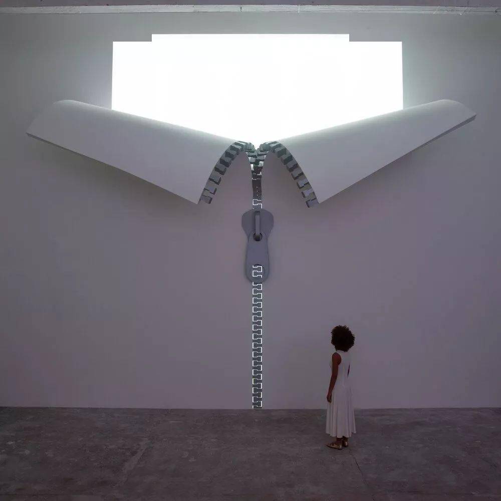 《对公众开放》(Open to the public)位于英国肯特郡的阿什福德(Ashford),原本是一座被废弃的房子。经艺术家改造,成为一件有趣的公共艺术作品:正面像一件领口被拉链拉开的衣服,背面也有一条横向拉开的拉链。