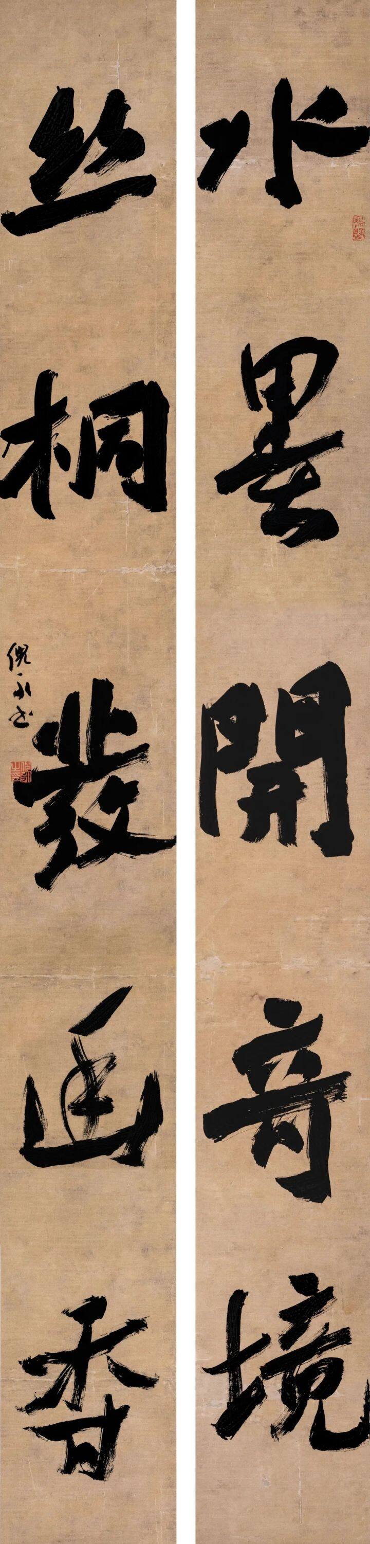 ▲ 水墨丝桐联 244cm×28cm×2