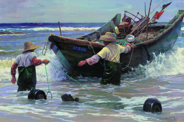 李节平《白露·渔归》100cm×150cm 布面油画 2016年