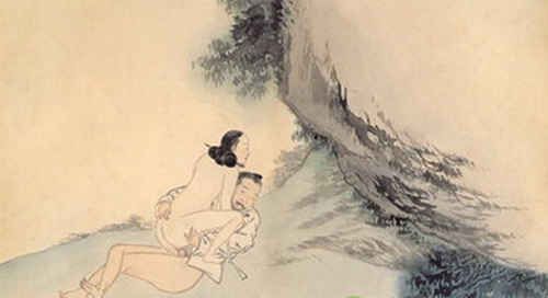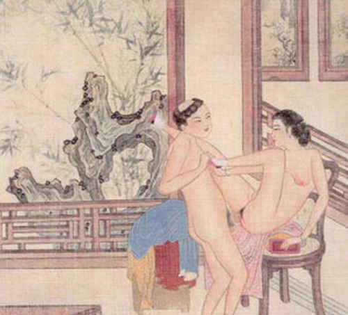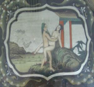唐寅,字伯虎,一字子畏,号六如居士、桃花庵主、逃禅仙史等,吴县(今江苏苏州)人。少年时学画于周臣,后结交沈周、文征明、祝允明、徐祯卿等,切磋文艺,历史上记载他是个风流才子,诗、文、画俱佳。他率性不羁,有时用“江南第一风流才子”印,由于仕途多舛,就游历名山大川,专门致力绘事,以卖画为生。他长于人物,特别以仕女画见长。他画春宫画,与他的生活情趣有很大关系,也是他风流性格不羁的表现,可能也是对当时官场和社会的虚伪以及封建礼教的讽刺和反抗。明、清两代,有一些知识分子看透世事、绝意仕途,只是徜徉于山水之间,沉湎于妇人之乐,吟诗作画,了此余生。在中华性文化博物馆中有一副木制楹联,上写“闲为水竹云山主,静得风花雪月权”,就是这些知识分子人生观的写照。