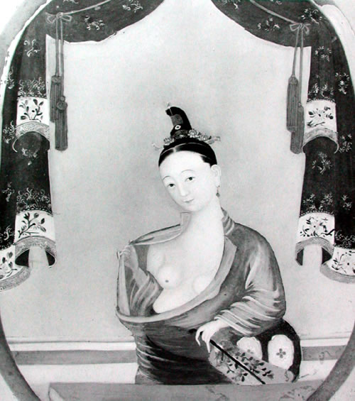 常沉湎于温柔乡中则是事实。中国古代的人体艺术是不发达的,因为中国古人忌讳裸体,艺术家不用裸体模特儿,所以中国古代出不了欧洲米开朗琪罗这样的大师。而有人说,唐寅作春宫画,常以他所眷恋的妓女、情妇为裸体模特儿,所以才画得那么传神,那么惟妙惟肖。唐寅所绘的女性常显得壮健丰腴、圆脸、妖冶,使人联想到唐代美女的形象。唐寅所绘的女性有个特点是“三白”,即前额一点白,鼻尖一点白,下颌一点白,这往往是后人鉴别真假唐寅画的一个标准。