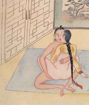 唐寅所作的一般仕女画,至今传世的有《孟宫蜀妓图》、《班姬团扇图》、《嫦娥奔月图》等,但其大幅绢本的秘戏图至今已不复见,只是在古籍中留下几首清人题唐寅春宫画的诗作,如:“鸡头(乳房)嫩如何?莲船(三寸金莲)仅盈握;鸳鸯不足羡,深闺乐正多”,“清风明月无从觅,且探桃源洞底春”等,让后人去想像、描摹。唐寅小幅的春宫画作品也很少传世,据说,有一幅《小姑窥春图》今藏日本,是他画的。画幅左边有一对男女隐约地在帐中做云雨之欢,门外一个少女在偷看,还情不自禁地把手伸进自己的裙中。清代有画家仿唐寅画意,画了《隔墙有耳》,观之亦可知唐画之梗概。因为《小姑窥春图》含意蕴藉,落笔精妙,许多风流名士纷纷题词其上,如清初的陈其年就题了一首《菩萨蛮》词说:“桃笙小拥楼东玉,红蕤浓染春鬓绿。宝帐缜垂垂,珊瑚钩响时。花荫摇屈戍(开关窗户的铁环纽),小妹潜偷窥,故意绣屏中,瞬他银烛红。”