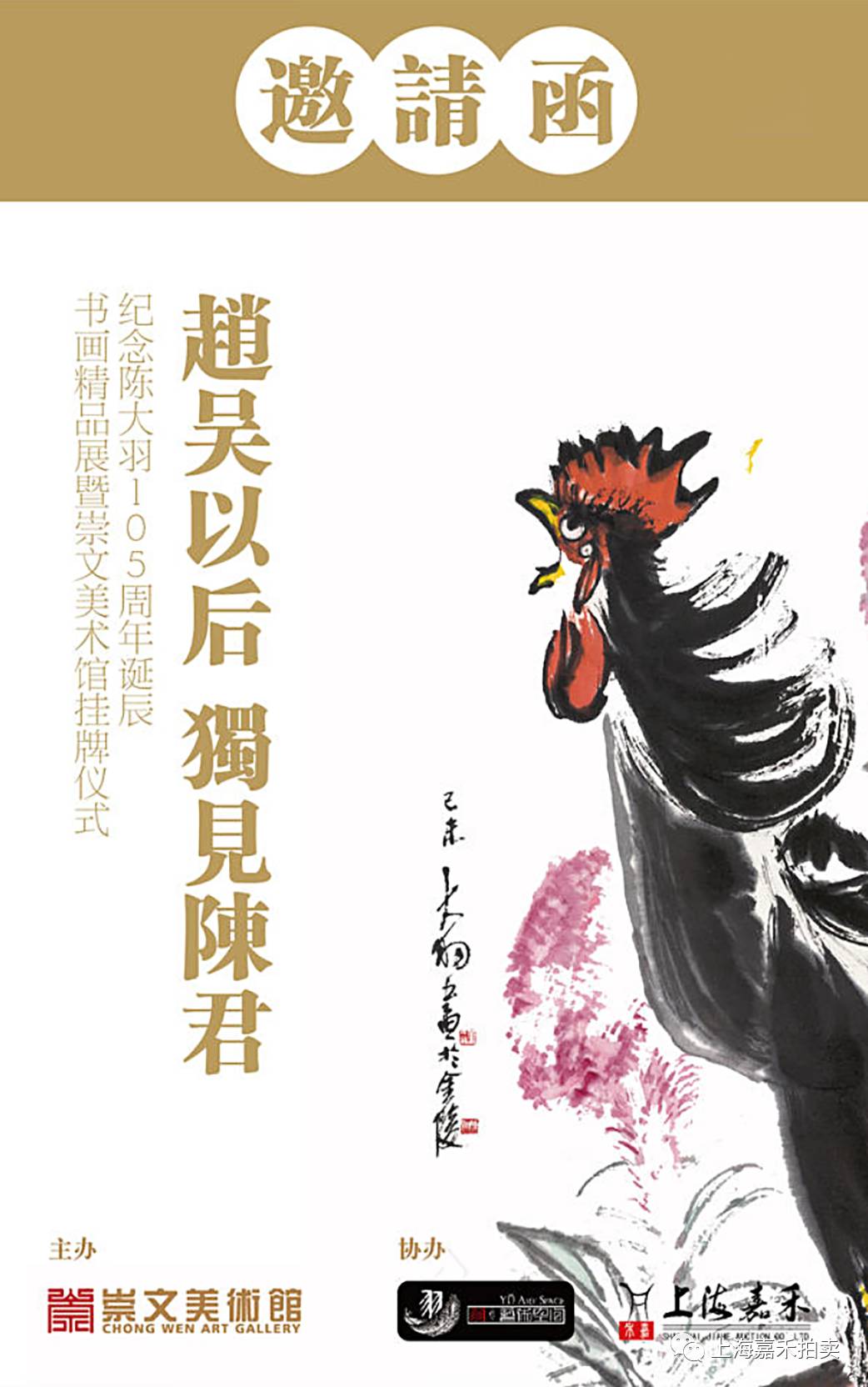 上海嘉禾拍卖有限公司创立伊始便推出了海派名家作品专场,其中《独见陈君》-陈大羽大师作品专场已成功举办六期。通过这样的大师专场,我们可以对艺术家的学术、市场及艺术家一生经历和各个时期的艺术风貌做全方位的研究。《独见陈君》-陈大羽大师作品专场,我们特聘陈大羽大师外孙韩宁宁先生作专场顾问,韩先生本身就是艺术家,赋有正统的文脉传承,对陈大羽艺术作品的学术研究、真伪鉴定有着一定的优势和权威性。