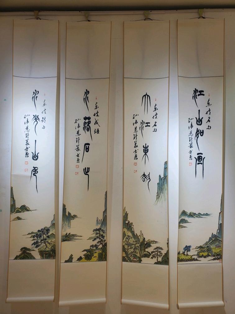 孙伟的悬针篆创作,更是一次将古老书体引入当代视野的成功尝试。他不仅完整继承了悬针篆的笔法特征,更通过字库开发、教材编纂等方式,使其成为可传播、可学习的活态艺术。在展览作品中,他的书法与王林的绘画相得益彰,篆书的古意与写意画的逸气相互生发,共同构建了一个立体的东坡艺术世界。