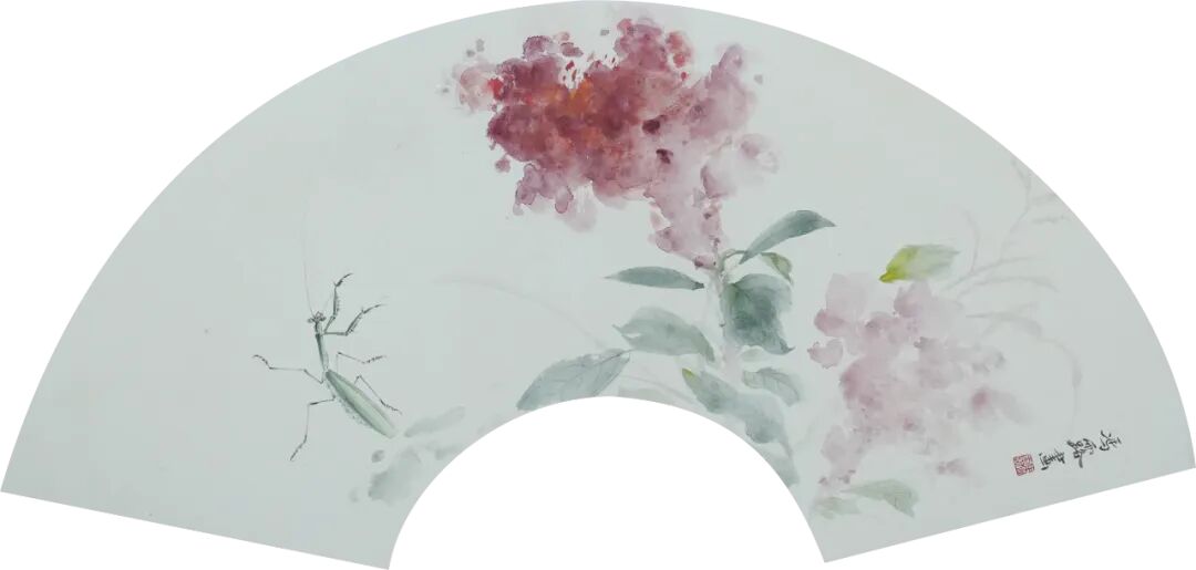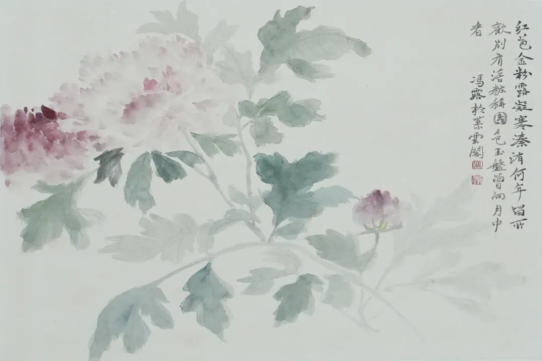 在色彩运用上,冯露展现出了独特的审美与把控能力。她的色彩并非是对自然的简单复制,而是经过精心调和与搭配。在表现花卉的娇艳时,她运用柔和而明艳的色调,既凸显了花朵的美丽,又不会给人以艳俗之感;在描绘枝叶时,深浅不一的绿色层次丰富,营造出一种自然的立体感与空间感。整体色彩和谐统一,营造出一种宁静而美好的氛围,让观者沉浸其中,忘却尘世的喧嚣。
