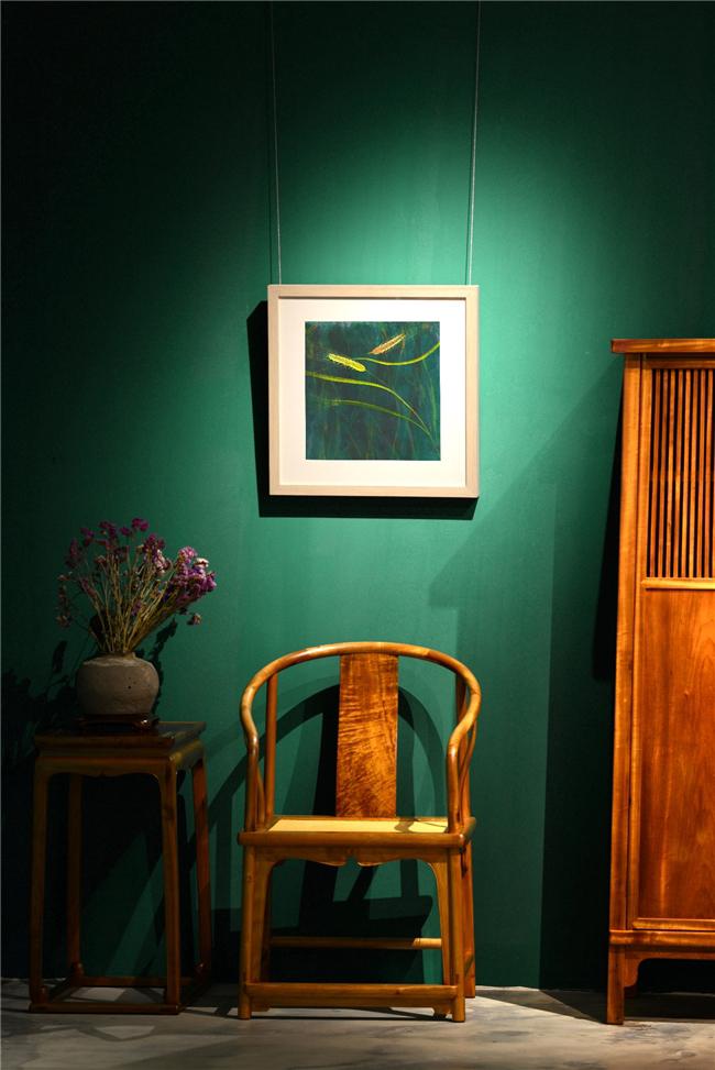 明式家具之经典隽永,麦穗之沉甸收获,草木之间,都传递着一种文化力量和生命向上的精神。丁融的大麦作品和明式审美的意境是相通的,并将明式美学融入其中,蕴含着画家“绘法自然”的理念,使传统文化在当代艺术中得以延续和发展。这些,在展览现场都能欣赏和感受得到。