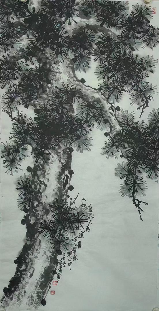 韩殿君是辽南画院画师,曾在杨柳青出版诗书画作品集。这组作品,不是逸笔草草的日课,更不是闲情逸致的抒发,而是“翰墨喋血寄相思”的力作,松树傲然挺立,兰花默然低垂,表达着痛失老友的怀念之情。
