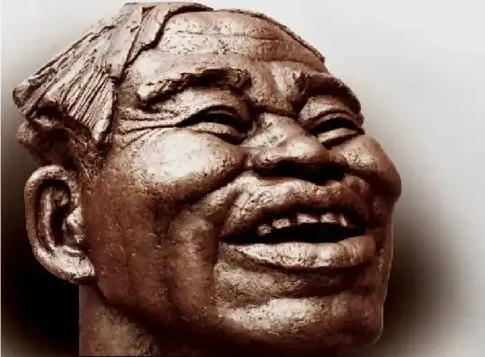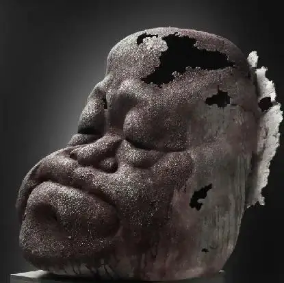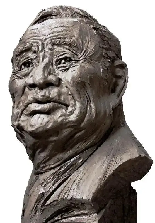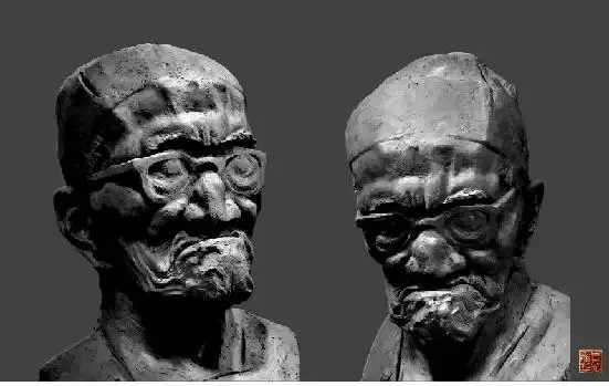 也就是“新具象”风格,具体体现在细节处理上的主观表现性。他不追求照片式的光滑复制,而是通过对泥性的保留、 刀法的走势来传递情绪。例如塑造任正非时,他通过硬边、 块面的切削感来体现企业家的坚韧与沧桑;在塑造莫言时, 则通过微妙的面部起伏及破孔捕捉文学家的敏感、深邃,通 过有鼻无孔有口难张揭示其精神磨难。
