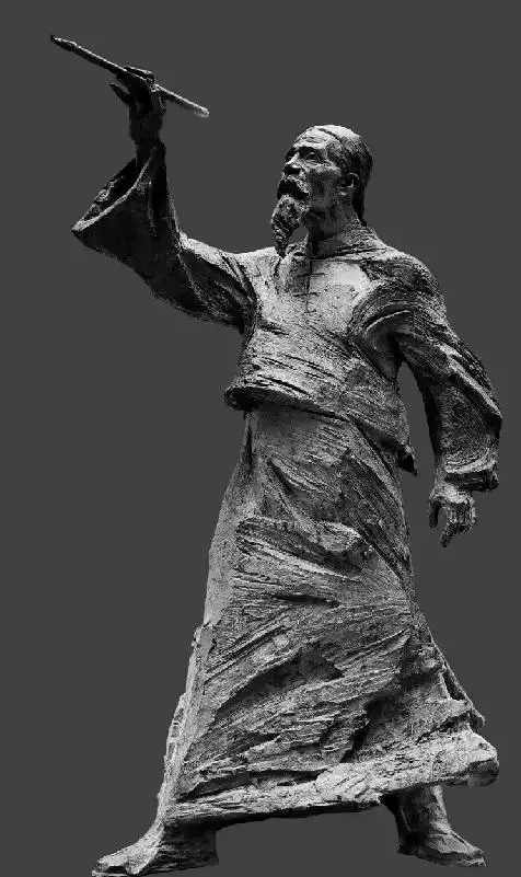 刘兆丰:今天给我的第一感觉是我们这些人坐在一起,还 有雕塑者和被雕塑者,看起来是代表了差不多半个世纪。我 们在座的可能是50后,60后,70后,刚刚走的刘道玉先生 是30后,其实我们的所有存在都是历史,今天看到的雕塑,实际上 是为一个时代而雕塑,你把它放在一起,它们会形成一个群 像,随着不同的场地,不同的机缘,他们会互相在一起,我 觉得它会更有那种时代的意义,那么这样的话,李钢做的这 些事,肯定会让大家想到当年的“贵州现象”。从尹光中的精灵古怪,到李钢的老师田世信那种拙朴野性, 再到后来进入文人气,表达对中国文化的一些关照。而李钢呢,在这条脉络上,他在贵州茁壮野蛮生长,贵州 是流放的地方,人都走了,李钢还留在这里,我们看他雕塑 的尹光中,没有粗野的原生感觉,而是表现尹光中晚年的温 和内观,我觉得贵州现象已从山野之气开始转向人文了。我 认为是非常欣喜的事情,他并没有再进一步的用那种特别夸 张的、巫的、野的东西去体现所谓的贵州特点,从根本上再 也不是民间匠人的心态,而是回到现代性的一面,这就是李 钢正在做的。李钢有双重身份,一方面,自说自话,在自我表达,另一方面接受很多委托,从某个角度来说,他是体制内的创作者,我把他的雕塑,看成是这个时代本身的胎印、印记,他就是这个时代文本本身。刚才庆武兄提到,他一些失败的东西,我觉得不叫失败, 就归入这个时代本身,但是他现代性的这种雕塑我是感受非 常非常的深。非常好的是他在同步走的时候,有二个维度和二个面向, 可以站在不同的角度看问题,有时他会倒过来,去审视,去 挑战,这个皮囊后面究竟藏着什么。在这个展览上有三件作品我是印象极深的,印象深的是我 第一次去他工作室,他在做一个小雕塑乌克兰女孩像,向乌 克兰致敬!最后取名《乌云笼罩乌克兰》。第二个是《阳明 悟道》,第三是《国士道玉》像,他第一时间发给我,他需 要知音,散热,不然自己会被内心燃起的火烧死!我觉得李钢不靠什么理论来雕塑,他是灵魂的那种,灵魂 牵引着他,他有一种天才的本能,透过皮囊看到灵魂。