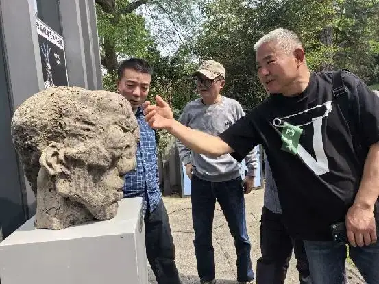 王锦霞:在这个有山有树有网红的地方,做这样一个小 而精的雕塑展非常有意思。李老师的作品,之前在他的工作 室看过,但是今天在这边看的感受完全不一样,开幕式人很 多也静不下心来,而今天我来了之后先走了一圈。也许跟我画工笔人物有关,我进来之后,我会情不自禁关注到人物的神情,我觉得这一定是有感而发,由情而发的, 就叫“情动于中而形于言”。如果李老师没有这么深厚的感情,是雕琢不出感觉的,我静下来去看的时候,哎呀!我就觉得有很多情感的因素被激发出来了,我不知道别人怎么样,但对我的感触是这样的,这个作品就是莫言像,其实之前我看 过,然后是王阳明像,就是让人觉得灵魂上受到了触动,是我最大的一个感触!跟李老师有点相似,叫勤勉以学纳于言,反正说不好只能让作品说话。